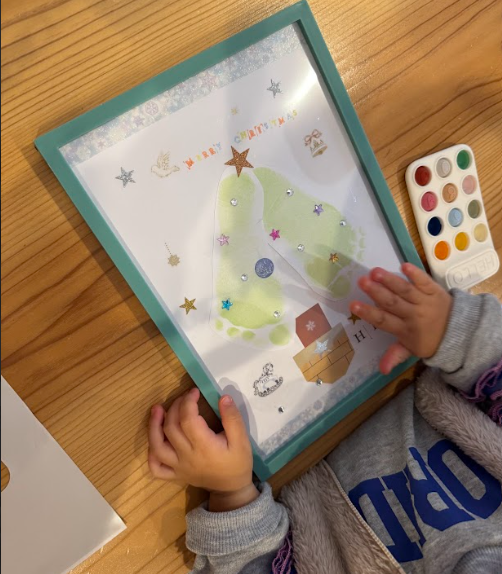 きらきらの星のシールやオーナメントをぺたぺた・・・👣🌟