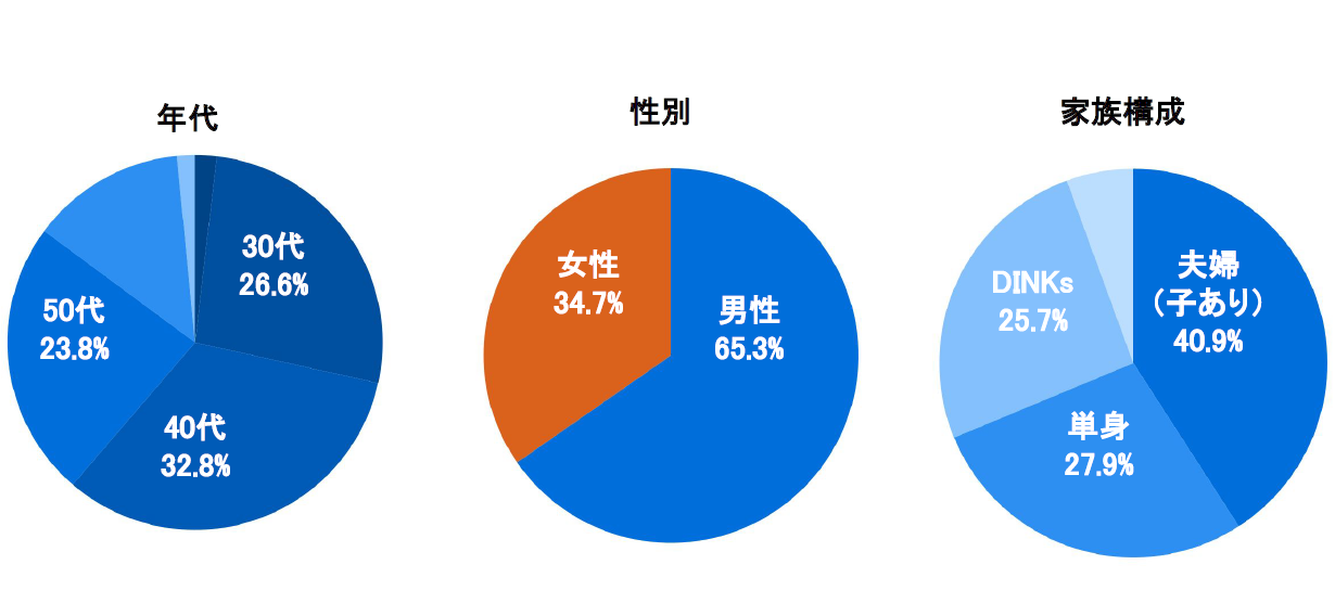 夫婦二人だけのDINKsと単身での購入層が53%。