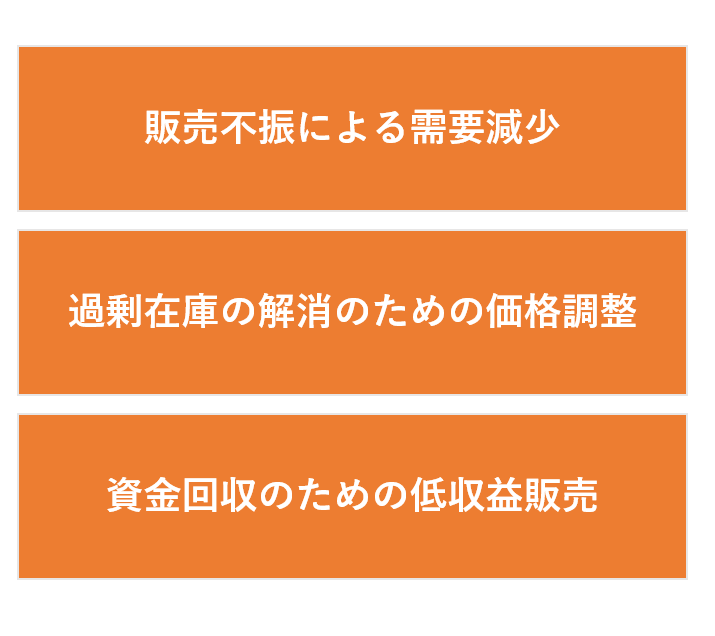 ①販売不振による需要減少