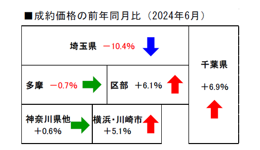 成約価格は埼玉県と神奈川県他以外の地域が前年比で上昇