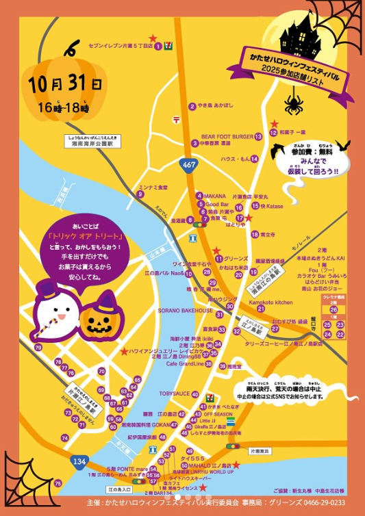 10月31日(金)は片瀬地区の東り町&スバナ通り&国道467号線(旧 片瀬県道)近辺の参加店舗を子供達(中学生まで)が
