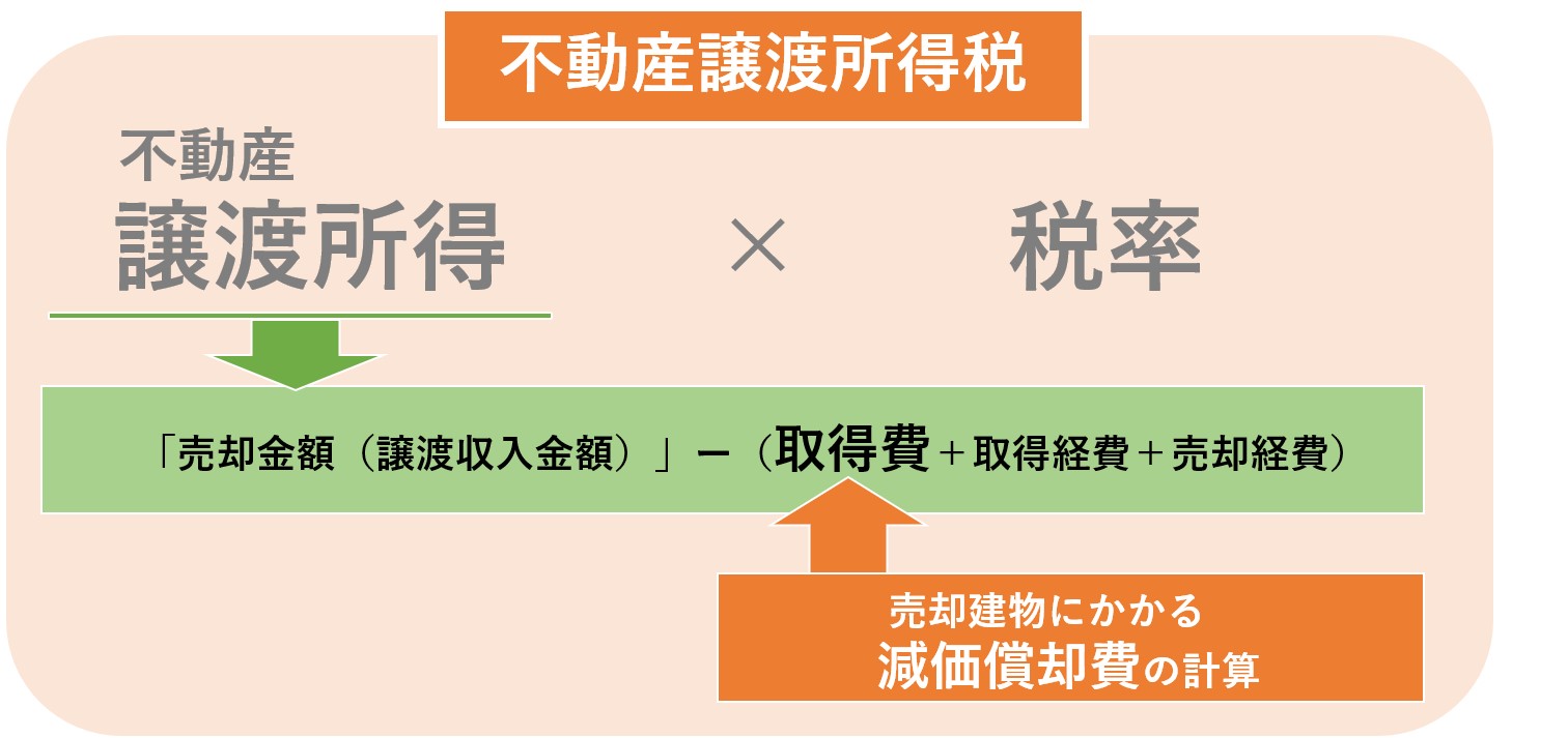 譲渡所得を計算する際は会計基準により、不動産の建物部分は取得時点からの経過年数に応じて減価償却することを知っておきましょう。