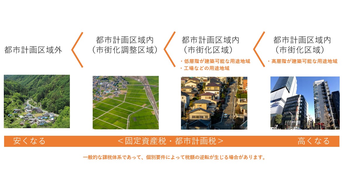 固定資産税の評価額は、都市計画区域内が高くなります。
